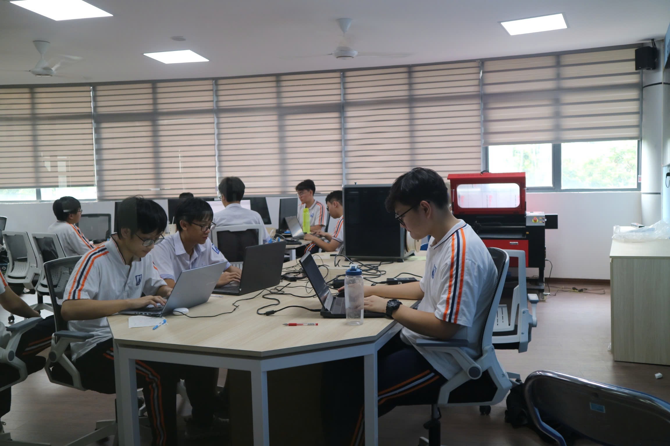Nhóm thí sinh AI Contest 2025 đang phát triển dự án AI sáng tạo. Ảnh: VLAB Innovation